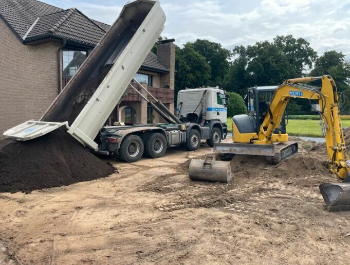 Ziemie dostarczamy samochodami typu wywrotka. Do dyspozycji mamy samochody małe typu bus, który wszędzie się zmieści, a jego szerokość to tylko 2.50m. Ładowność to aż 5 ton, więc jeśli zależy Ci na małej ilości ziemi, również ją dostarczymy.